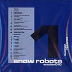 Suction Records catalog: "Snow Robots Volume 1 is a retrospective compilation CD from Canada's premiere source of robot music, Suction Records. Suction Records was founded in early 1997 by likeminded robot music composers Lowfish (Gregory de Rocher), and Solvent (Jason Amm). This CD compiles Suction's out-of-print vinyl releases from 1997 in their entirety, and also features several exclusive goodies, both new and old. Suction Records' first 2 vinyl-only releases from 1997 highlight their 'distortion pedal new wave' beginnings. These tracks by Solvent, Lowfish and David Kristian are now available for the 1st time on CD. Originally brought out of the woodwork by Aphex Twin's Analogue Bubblebath material, the Suction robots joyously indulged in raw, distortion-pedal analog madness. But this was no Rephlex knock-off, for the Suction robots had already built up an impressive resume, with several years of bedroom-studio experience, and well-versed in the early works of Cabaret Voltaire, Human League, and Skinny Puppy. The results are dark and filthy, but with a reckless sense of enthusiasm that will charm. To compliment the chaos, Suction have rounded out Snow Robots Volume 1 with six variations on Suction's patented melodic electro-pop theme: Two pre-suction tracks by Gregory de Rocher -- soothing, melodic and timeless electronica recorded in 1996 under the pseudonym Pest(e); A remix of Solvent by Detroit's mutant techno-pop duo, Adult., who also run the seminal Ersatz Audio label; A remix of Lowfish by Germany's Lali Puna -- moody electronic pop with paranoid female vocals (their debut LP was released on Morr Music / Darla); And a brand new, exclusive track each from Solvent and Lowfish -- two melodic electro tracks that are definitive Suction." |