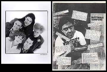 BUTTHOLE SURFERS 1987 press kit $30 8x10 glossy photo and 10-page booklet of press reprints from Forced Exposure, Thrasher, Boston Rock, Option, Sound Choice, Pipedream, CMJ, Ink Disease, Village Voice, Zig Zag, L.A. Times, Rockerilla, Spin, Melody Maker, Flipside, and others. Booklet is single sheets stapled together in upper left corner.