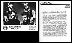 Gaye Bikers On Acid, 1987 promo materials from Caroline Records: 8x10 glossy photo and 2-page bio.