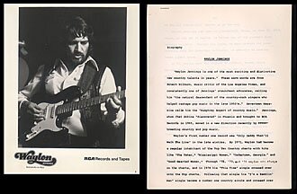 WAYLON JENNINGS 1975 press kit $35 8x10 glossy photo and 4-page bio from RCA Records.
